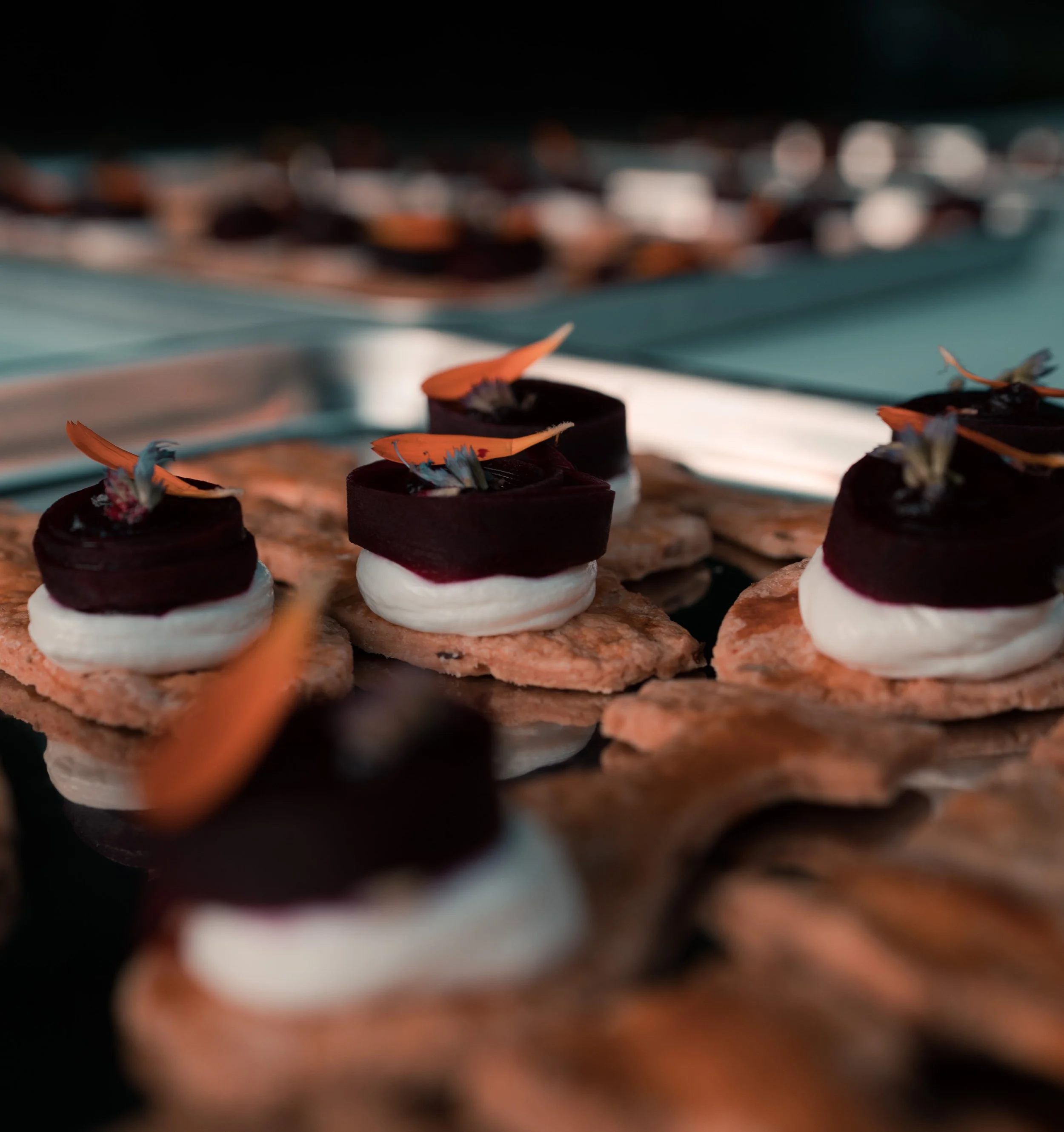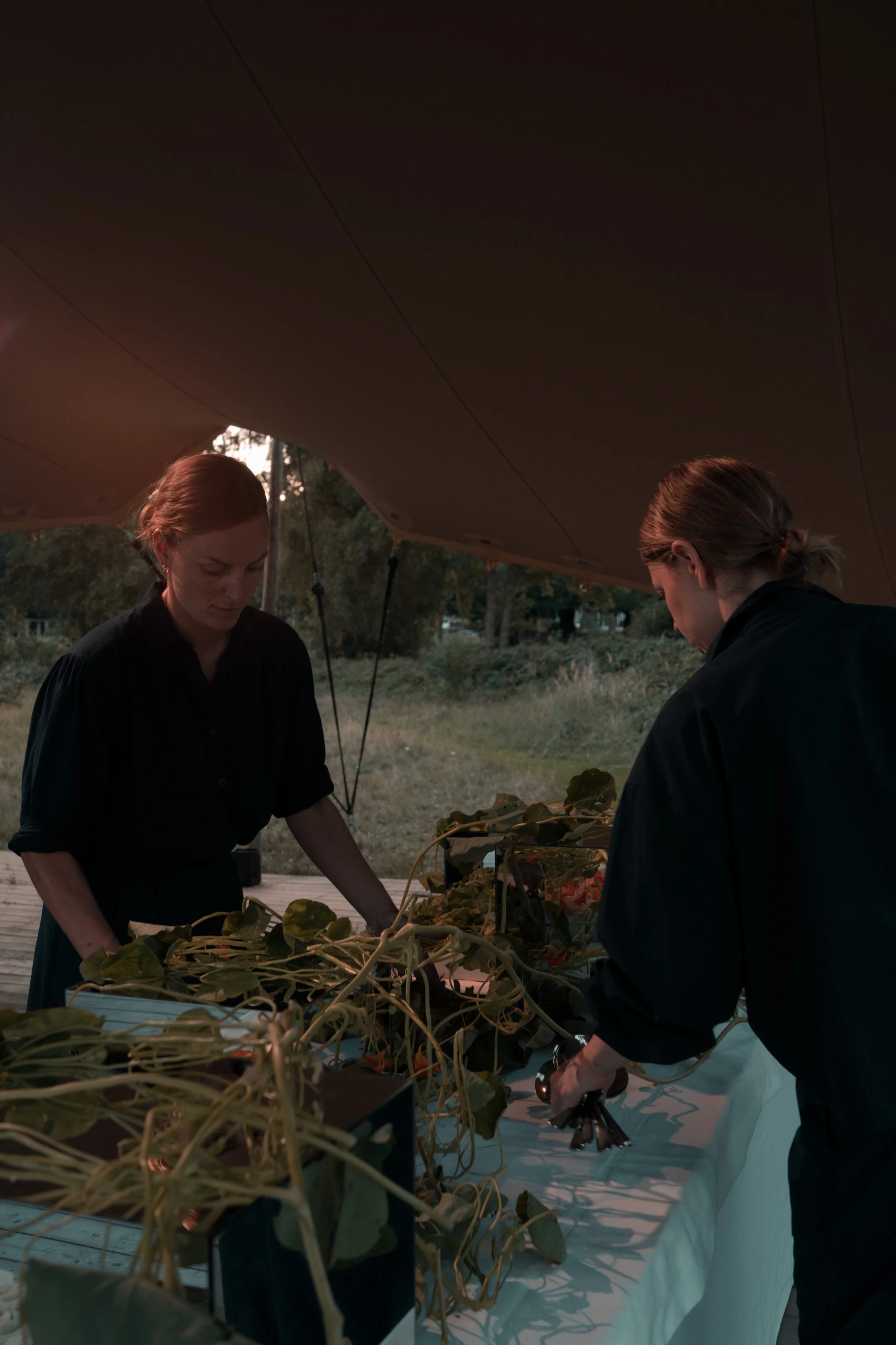 Ons culinaire aandeel tijdens deze avond was een zintuiglijke reis. Gasten werden op een natuurlijke manier meegenomen van het museum, via de tuin, naar het Paviljoen, waarbij eten niet slechts een toevoeging was, maar een verlengde van de kunstervaring.