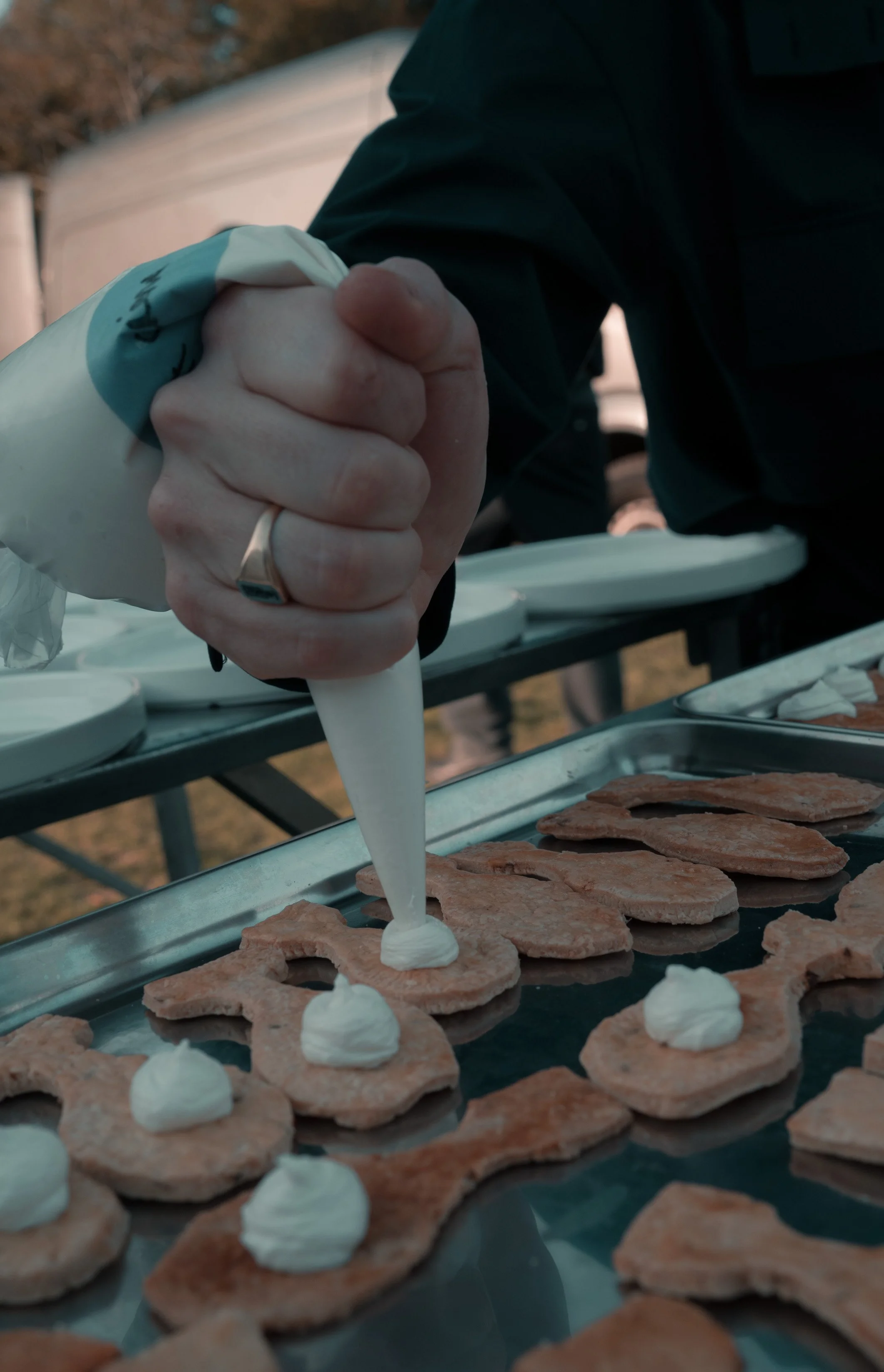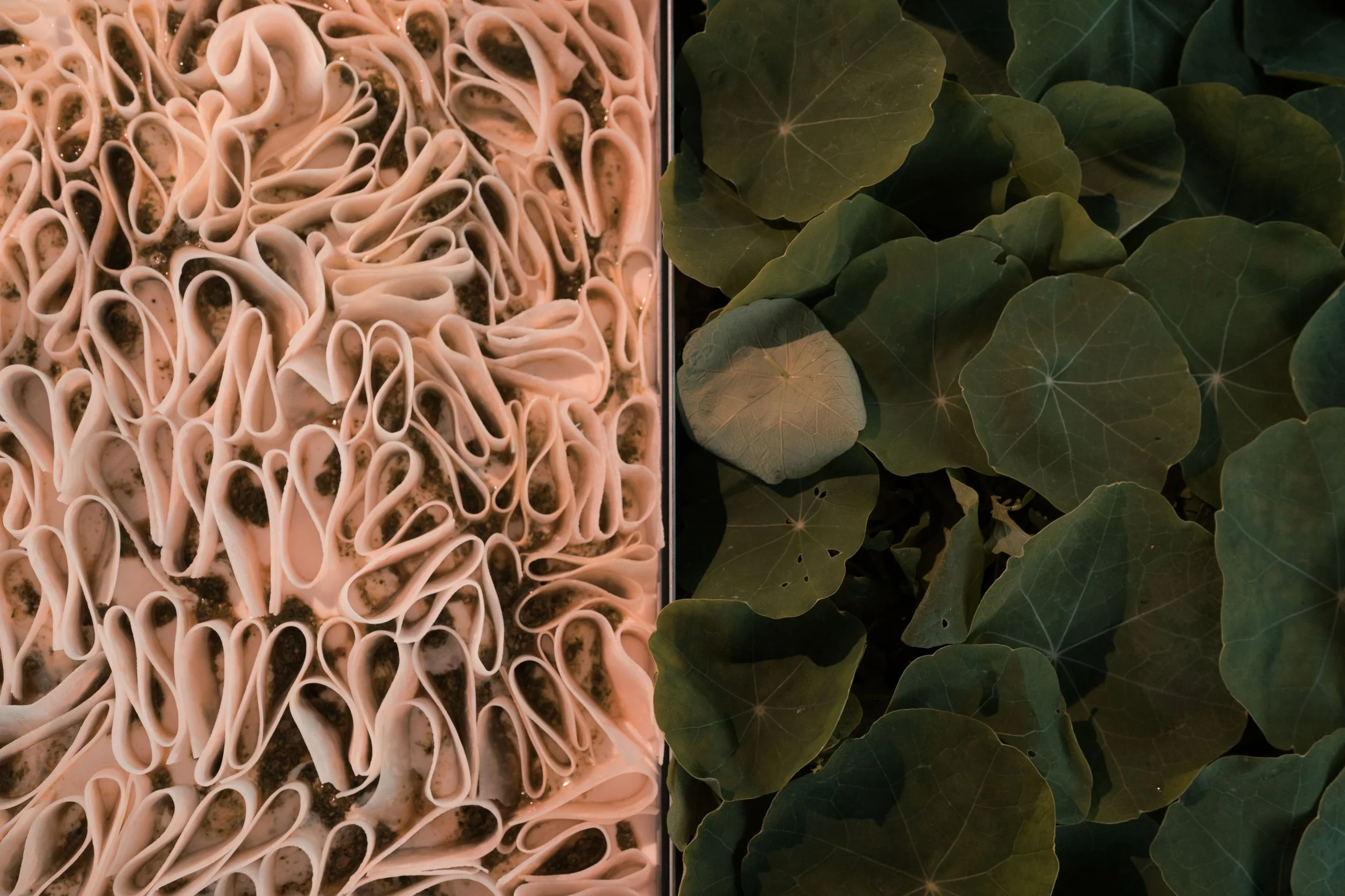 creëerde Voertaal Studio een culinaire beleving die esthetisch aansloot bij het werk van de kunstenaar. Dicht bij onszelf in stijl en uitvoering, binnen de kaders van het moment, en buiten de kaders van traditionele catering, daar ligt onze kracht.